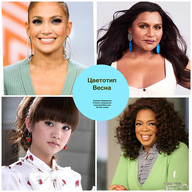 Представитель любой расы может оказаться Весной. Латиноамериканка Дженнифер Лопез, индуска Минди Калинг, азиатка Рейни Янг и афро-американка Опра попадают в эстетику Весны. Я прошу у читателей присылать мне ссылки на фильмы и передачи с участием Вёсен (на ваш взгляд) азиатской других рас.